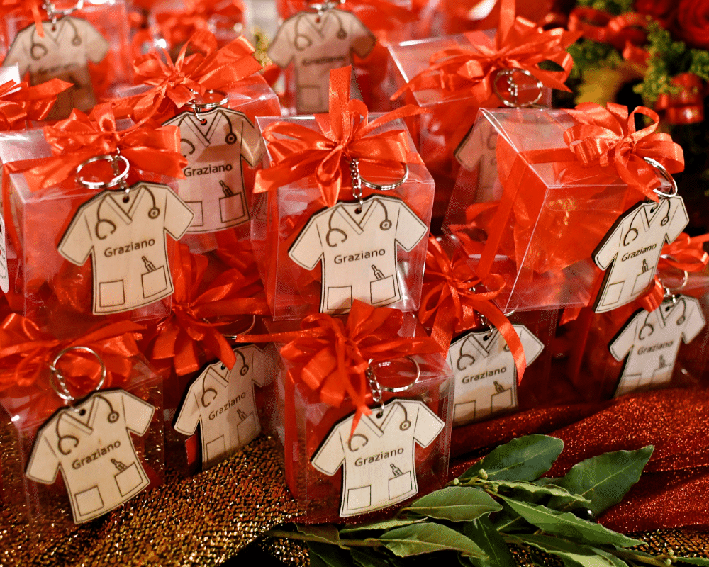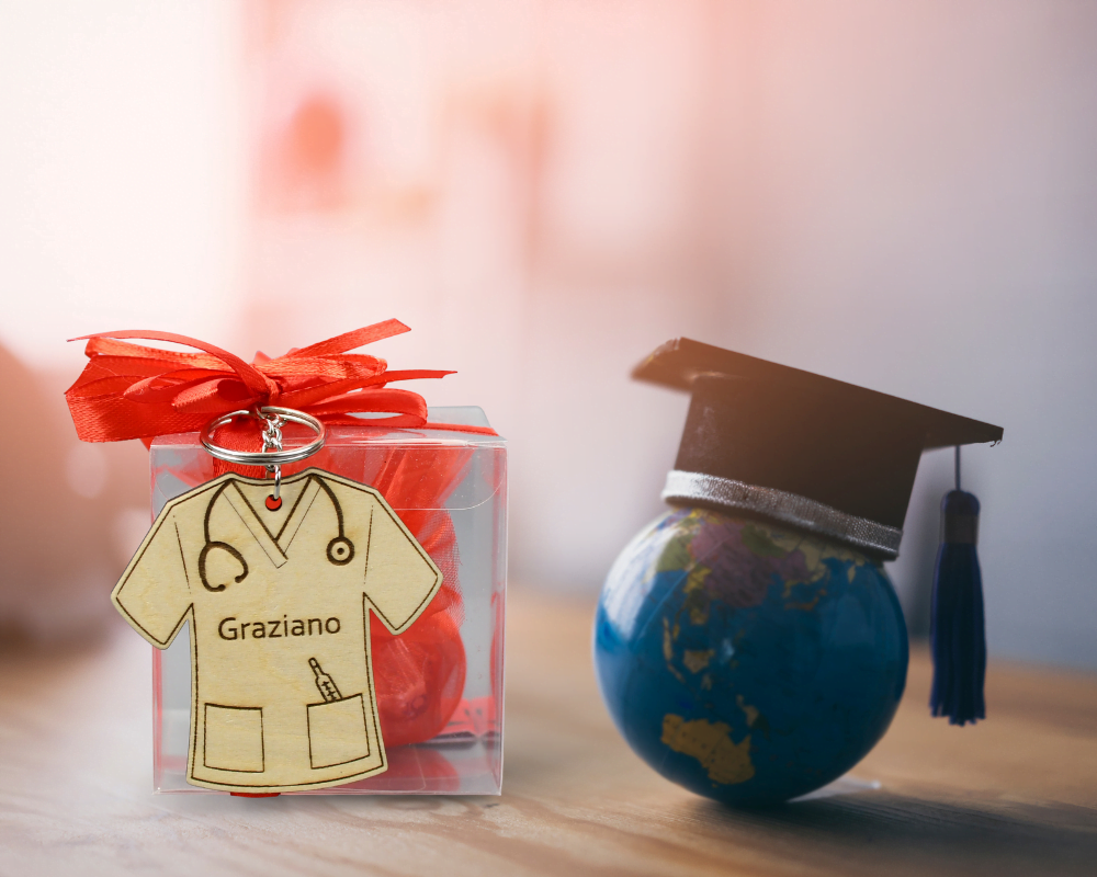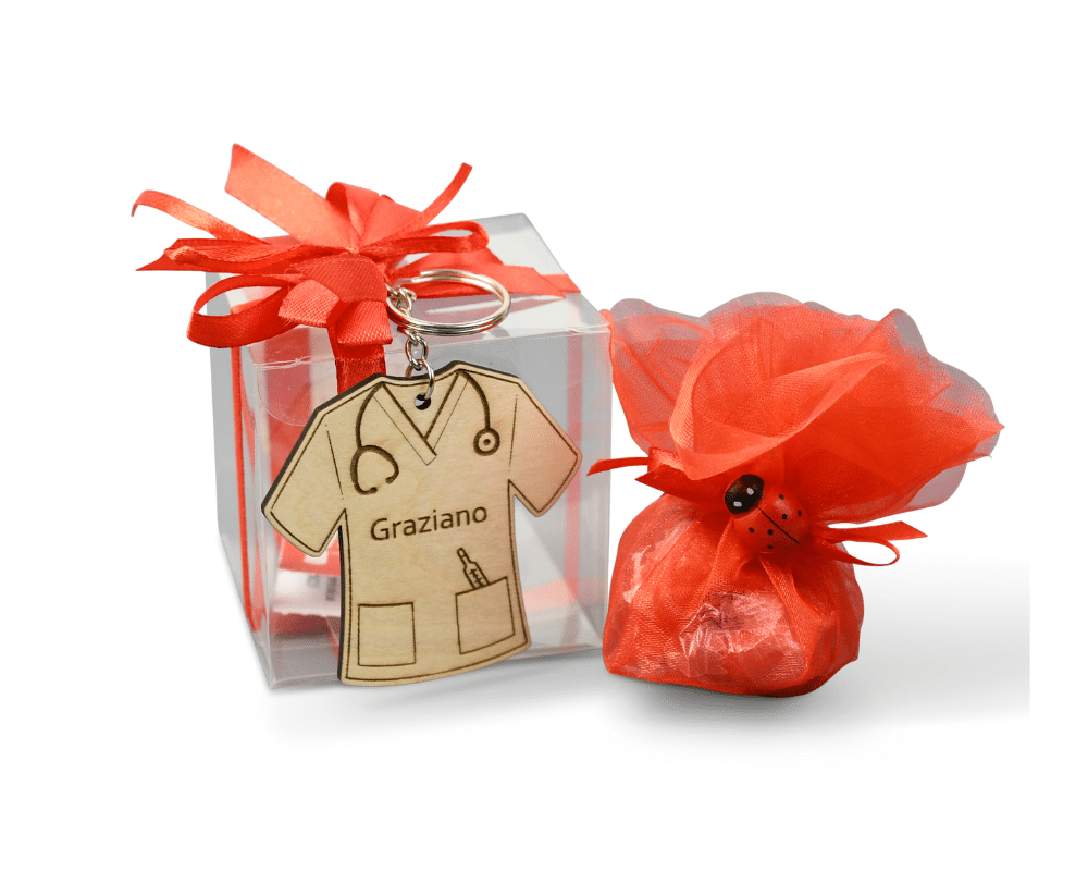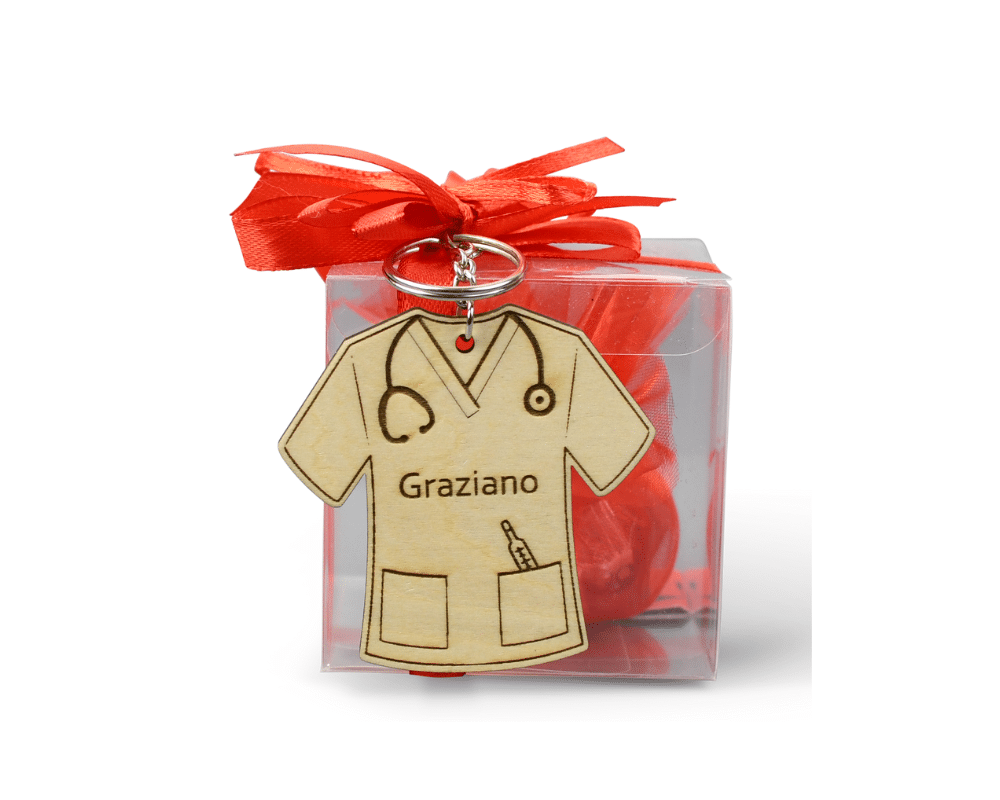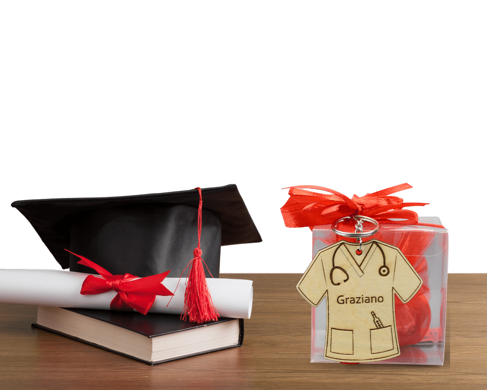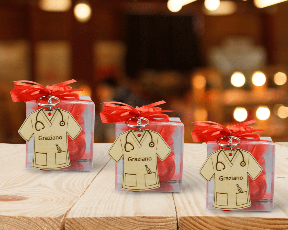 Bomboniera laurea medicina infermieristica portachiavi personalizzato con scatolina porta confetti