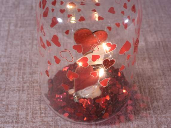 Set di Barattoli in vetro decorato c/paillettes a cuore e luci LED